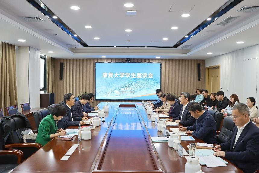 程凱在座談講話中充分肯定了同學們昂揚的精神面貌和遠大的理想,向同學們成為康復大學首批本科生表示祝賀,并對同學們的未來成長提出殷切希望。一是希望同學們樹立遠大理想信念,立大志。要樹立起為祖國、為人民永久奮斗、赤誠奉獻的堅定理想,把自己的理想同祖國的前途、把自己的人生同民族的命運緊密聯系在一起,努力成長為德智體美勞全面發(fā)展的社會主義建設者和接班人。二是希望同學們追求有高度、有境界、有品位的人生,明大德。要不斷錘煉品德,向榜樣學習,加強道德修養(yǎng),明辨是非曲直,增強自我定力,用真善美雕琢自己,不斷培養(yǎng)高尚的情操和淳樸的情感,努力使自己成為高尚的人。三是希望同學們努力學習、增長本領,成大才。要勇于創(chuàng)新,深刻理解創(chuàng)辦康復大學的初衷由來、基本定位、發(fā)展目標,深刻理解時代潮流和國家需要,孜孜不倦、勤奮學習,在攀登知識高峰中追求卓越,以聰明才智貢獻國家,以開拓進取服務社會,做人民生命健康的忠誠衛(wèi)士。四是希望同學們志存高遠、腳踏實地,擔大任。要實學實干,腳踏實地、埋頭苦干,未來在肩負時代重任時行勝于言,在推動康復事業(yè)發(fā)展中成就一番事業(yè)。