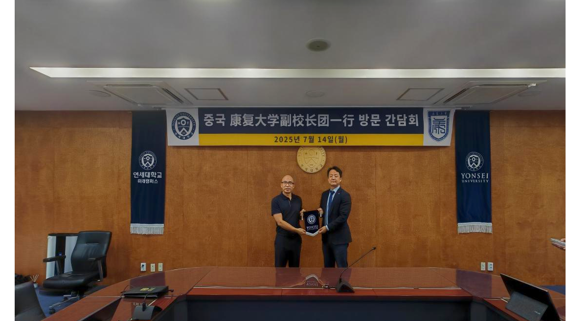 7月14日下午,代表團訪問了延世大學未來校區。延世大學建校于1885年,與首爾大學、高麗大學并稱為韓國大學的一片天(S.K.Y),在2025年QS世界大學排行榜位列第56位。代表團詳細了解了該校教學科研設施和康復相關學科建設情況等,與國際交流院院長樸應皙、國際研究生院院長李基鏞等進行了座談交流。雙方在學生聯合培養、教師海外進修和國際科研合作等方面達成了合作意向。15日上午,代表團訪問了延世大學原州附屬醫院,調研該院相關康復設施建設、器械配置和康復服務等情況。