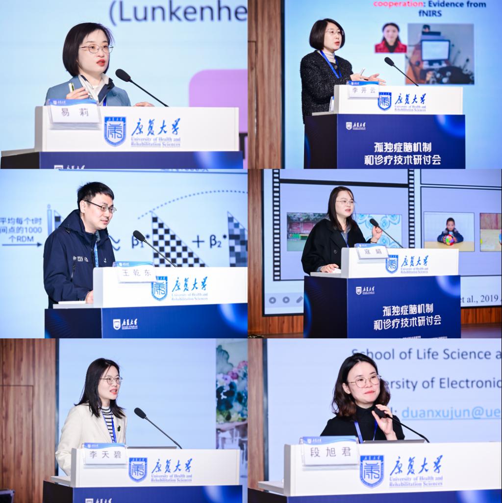 在孤獨癥機制主題報告環節,多位專家學者圍繞孤獨癥的神經機制基礎與前沿發現展開探討。北京大學易莉研究員針對“孤獨癥社交互動中的行為與神經同步性”分享研究成果;電子科技大學段旭君教授從網絡神經科學視角,系統闡釋“TMS干預孤獨癥的作用機制”;濟南大學李開云教授探討“基于近紅外超掃描和機器學習的孤獨癥兒童社交缺陷機制解析”;北京師范大學王乾東副教授解析“孤獨癥兒童面孔加工的注意模式:現象和機制”;四川師范大學寇娟副研究員結合眼動、fNIRS與fMRI等多模態技術,進行孤獨癥社交受損機制模型驗證;青島大學李天碧副教授則圍繞“孤獨癥兒童的共情與親社會行為”展開機制探討。