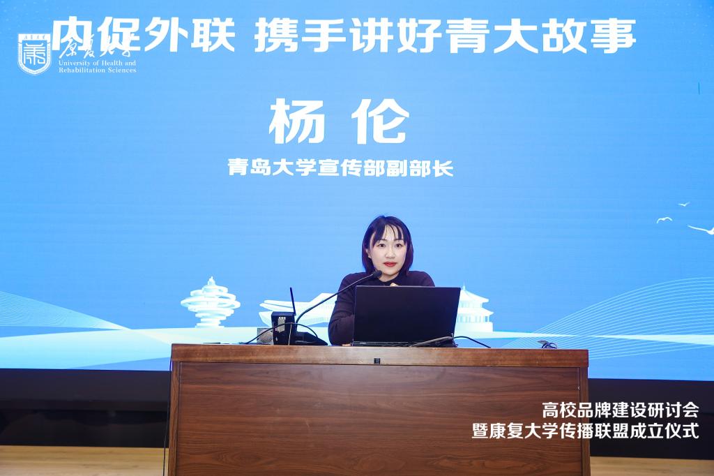 青島大學黨委宣傳部副部長楊倫結合本校實踐,以“內促外聯,攜手講好青大故事”為題作了經驗分享。她重點介紹了融媒體中心的運作機制與多平臺協同策略,強調以優質內容連接校園與社會,為高校在新媒體環境下創新敘事、塑造品牌提供了切實可行的路徑參考。