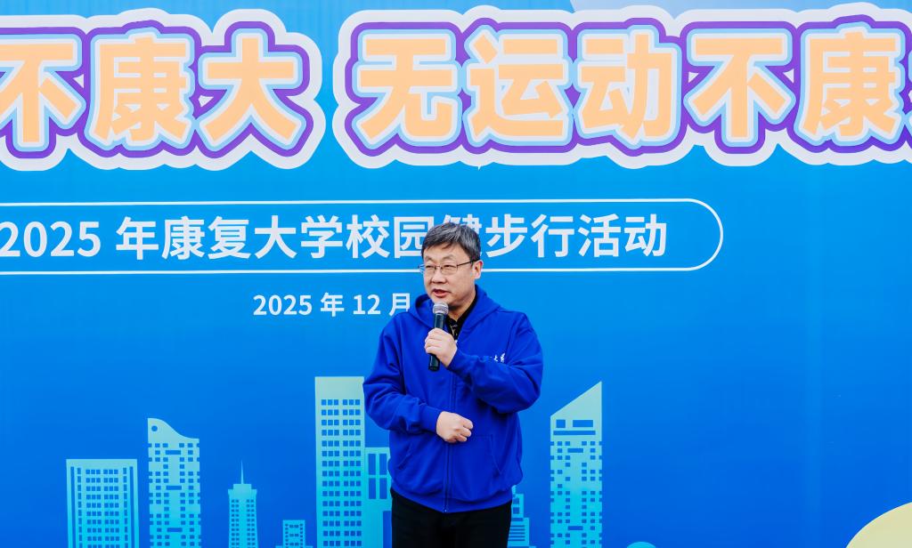 活動(dòng)伊始,學(xué)校黨委書記劉軍發(fā)表致辭。他強(qiáng)調(diào),健康是人類永恒的追求,更是康復(fù)大學(xué)辦學(xué)理念的核心關(guān)鍵詞。我們不僅致力于培養(yǎng)康復(fù)人才、研究健康科學(xué)技術(shù),更應(yīng)率先垂范,將主動(dòng)健康、積極生活的理念融入校園文化。這場(chǎng)健步行正是踐行“無體育不康大、無運(yùn)動(dòng)不康大”理念的生動(dòng)體現(xiàn)。作為康復(fù)大學(xué)的建設(shè)者,希望大家以此次活動(dòng)為契機(jī),把體育精神融入育人實(shí)踐,以更強(qiáng)健的體魄和更飽滿的熱情投入到建設(shè)高水平研究型大學(xué)的新征程中。