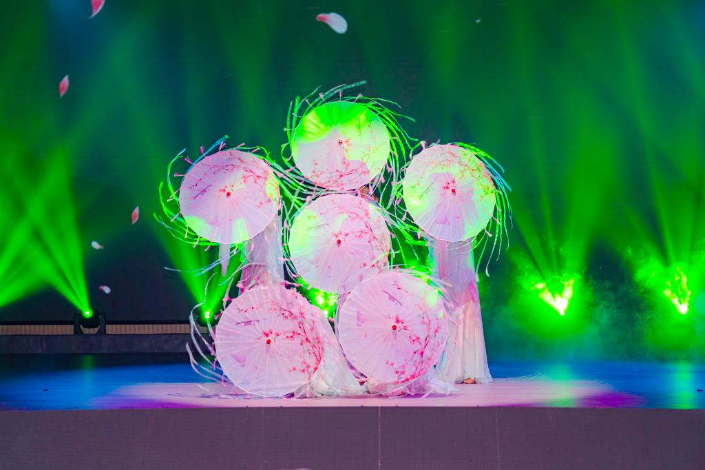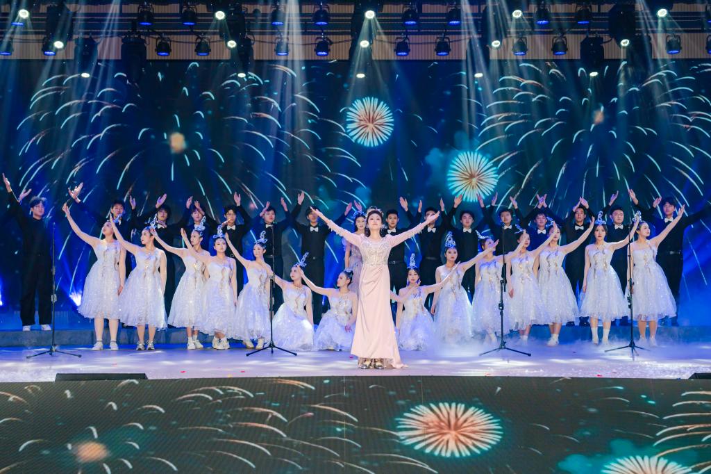 第二篇章“家國同心 聲頌時(shí)代”抒發(fā)家國情懷與時(shí)代擔(dān)當(dāng)。民樂合奏《盛世國樂》以多元樂器演繹出恢弘悠遠(yuǎn)的古典意境,盡顯中華優(yōu)秀傳統(tǒng)文化的深厚魅力;舞蹈《紅馬》以優(yōu)美靈動的舞姿演繹古典韻律,將東方美學(xué)意境展現(xiàn)得淋漓盡致;歌曲《銘記》用深情婉轉(zhuǎn)的唱腔傳遞歷史回響,激勵(lì)青年一代不忘初心、牢記使命;搖滾樂《祖國》則以充滿青春活力的方式表達(dá)了對祖國最熾熱的愛,激昂的節(jié)奏、熾熱的情感點(diǎn)燃全場師生的愛國熱情。