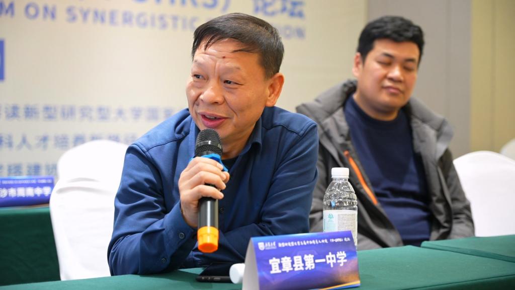 在座談交流環(huán)節(jié),山東大學王憲華、同濟大學陳宇光、四川大學廖愛民等分別介紹了研究型大學在拔尖創(chuàng)新人才培養(yǎng)、終身教育體系構建以及招生政策導向方面的探索與實踐。長沙市第一中學、邵陽市第二中學、宜章縣第一中學等多所高中校長代表從基礎教育一線的視角,分享了在培養(yǎng)學生創(chuàng)新素養(yǎng)、加強生涯規(guī)劃指導以及應對新高考改革等方面的經(jīng)驗與思考,并就如何與大學更有效地進行課程銜接、資源共享等議題,與高校代表進行了熱烈探討。