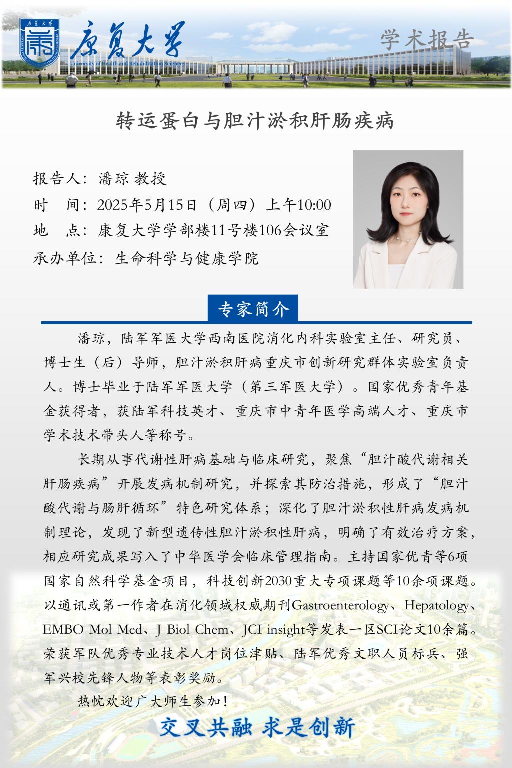 學術報告:轉運蛋白與膽汁淤積肝腸疾病