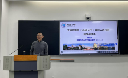 為深入研究語言模型背景下的外國語教研規律,探討生成式人工智能技術對外語教育與二語習得的深遠影響,11月29日,公共教學部特邀中國海洋大學外國語學院的楊連瑞教授作題為“大語言模型(ChatGPT)賦能二語習得:挑戰與機遇”的專題報告。