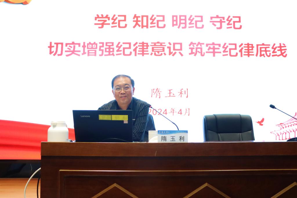 4月24日上午,學校邀請省紀委隋玉利同志為全體黨員作《學紀 知紀 明紀 守紀 切實增強紀律意識 筑牢紀律底線》專題輔導。從《條例》的修訂背景、重要意義、整體內容以及具體貫徹實施要求等方面,作了系統(tǒng)的梳理解讀。